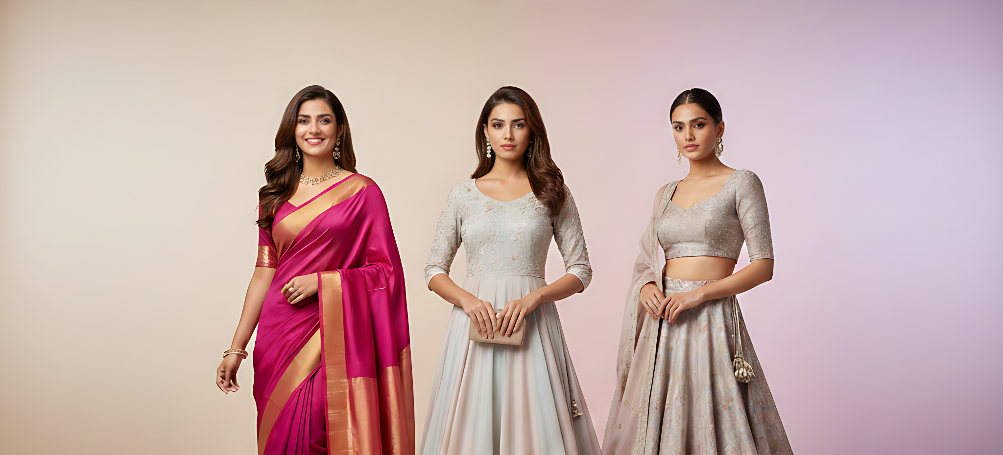 Space Silk Dual-Tone Saree with Aari Work Blouse